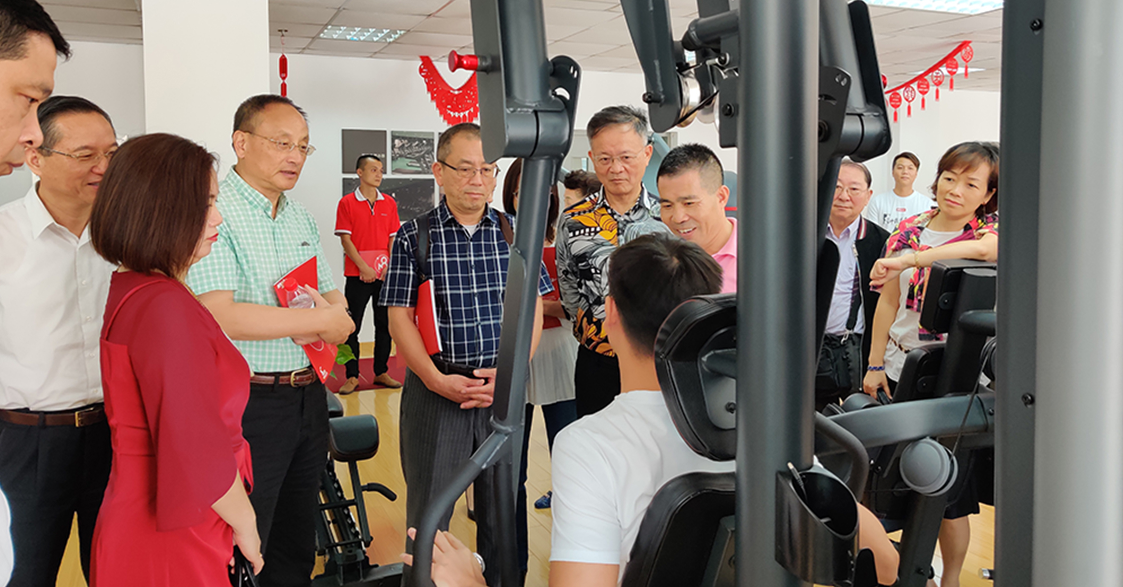 首先,来宾一行参观考察了365英国上市集团的文化长廊,对我司的发展历程、企业文化、企业特色等方面进行初步了解。在参观一楼与负一楼展厅过程中,来宾一行对365英国上市集团种类齐全的健身器材表现出浓厚的兴趣。